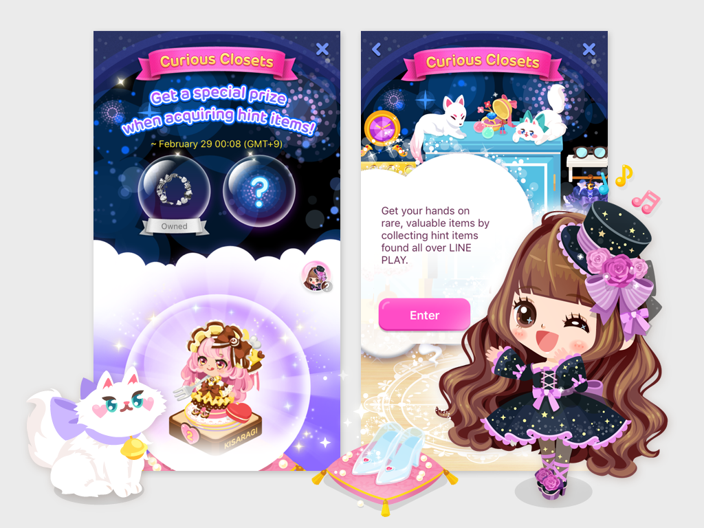 The new Curious Closets yield Super Rare items every day. Users can unlock rare items by finding hidden hint items that Cherry has hid left and right. The puzzle changes on a regular basis, offering lots of fun replayability.