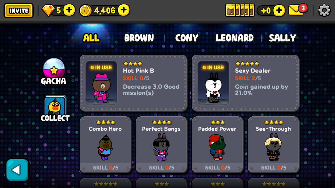 LINE Stage marks LINE GAME’s debut into the rhythm game genre, and players of all backgrounds will tap and flick the character button at the top of the screen in time with the song to clear stages. Brown, Cony, Sally, and the other LINE characters have stars in their eyes and are aiming for the top with their newly formed super-group called the Stagees, and the story of their growth into superstars will captivate players as they progress through the game.