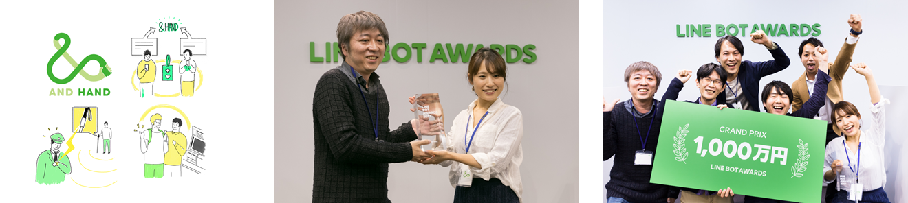 &HAND was recognized for designing a service that takes real steps to solve a variety of user needs, connecting people by mobilizing LINE Beacon (an IoT technology that uses Bluetooth Low Energy to transmit data), and offering a clear vision of commercialization grounded in actual implementation.