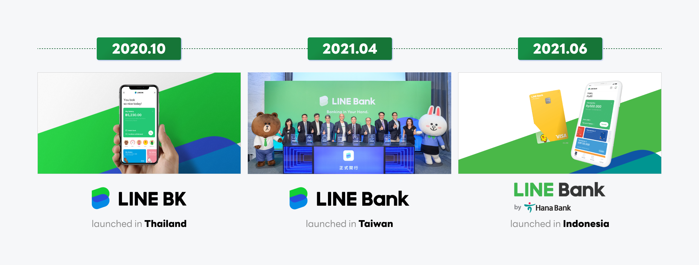 LINE Bank began operations in Taiwan and Indonesia in 2021, following the launch of LINE BK in Thailand in October 2020.