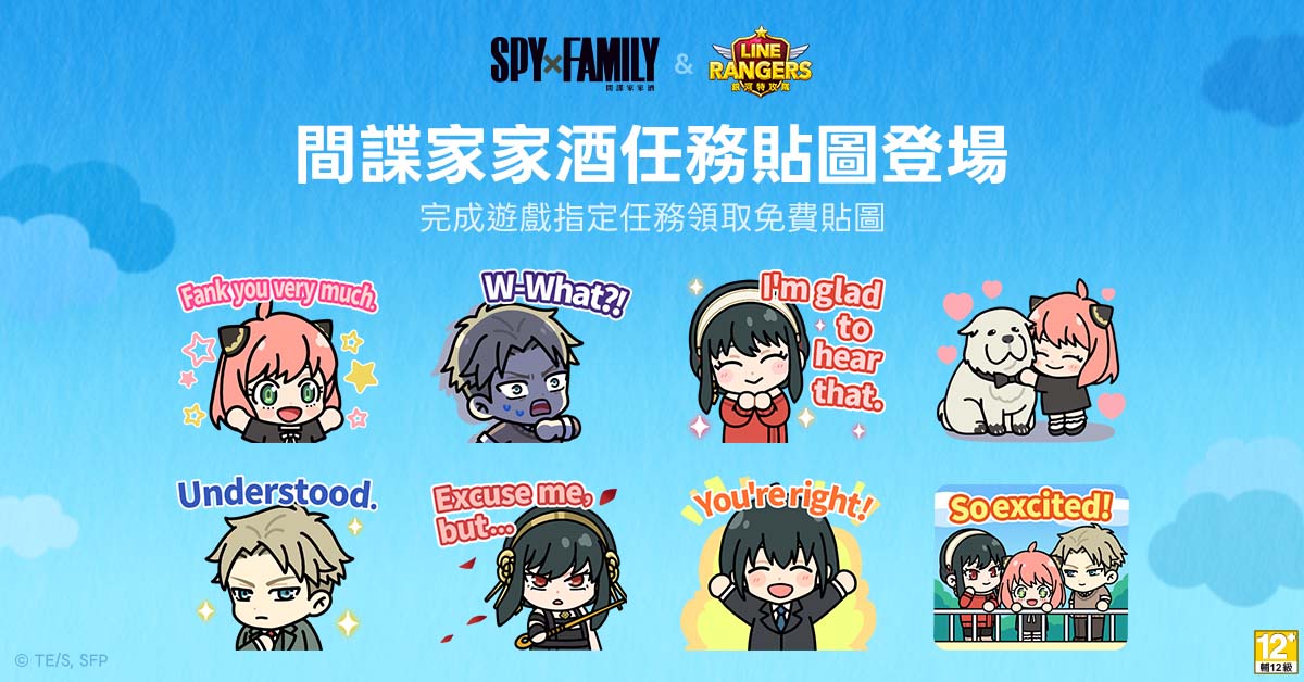 活動期間中,為紀念與電視動畫《間諜家家酒》合作活動將推出共8種圖案的限定LINE貼圖。只要通過5次合作特殊關卡1即可免費獲得。