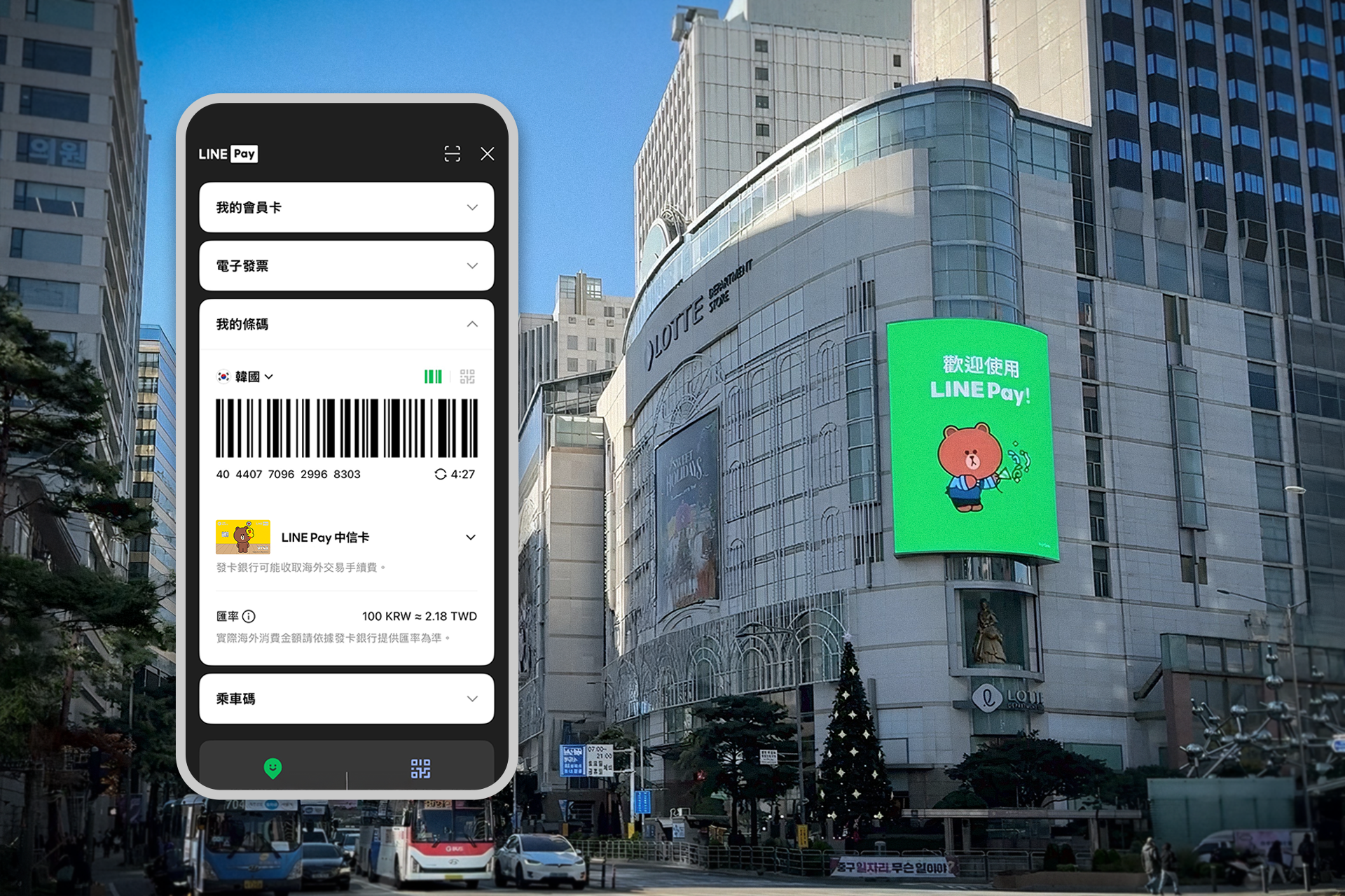 Since then, LINE Pay has expanded to more than 80,000 partner locations across Korea. From Lotte Mart and department stores to premium outlets and duty-free shops, more than 300,000 Taiwanese users have already used LINE Pay in Korea—driving overseas transaction volume toward an estimated NT$1.5 billion (US$48 million) by the end of 2025.