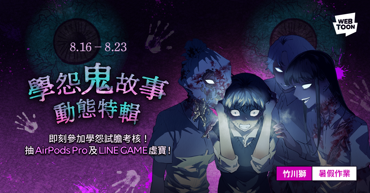 LINE WEBTOON表示,深耕台灣9年,觀察到與「在地文化、社會議題」高度關聯的題材,最容易引起讀者的共鳴,也最能與在地的讀者建立連結「搏感情」,每年因應台灣民俗文化所推出的鬼月特輯更是備受讀者的期待與好評。今年特別精選經典的「校園鬼故事」來當題材,相信讀者一定聽過校園中的鬼故事,甚至結伴探險知名的靈異校園景點,在閱讀時能更有聯想的畫面、讓毛骨悚然的恐懼飆到最高點!