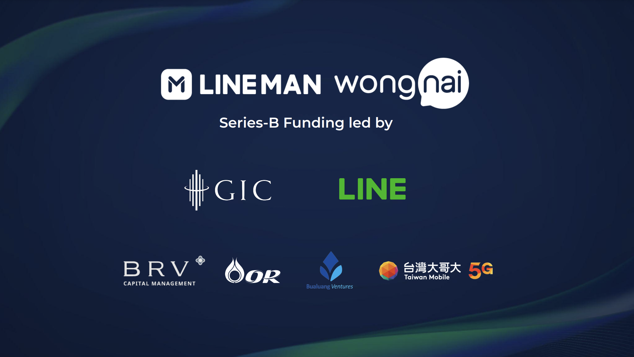 LINE MAN Wongnai ประกาศระดมทุนรอบซีรีส์บี มูลค่า 265 ล้านดอลลาร์สหรัฐ (9,700 ล้านบาท) นำโดย GIC กองทุนความมั่งคั่งแห่งชาติของสิงคโปร์ และบริษัท LINE Corporation ในการระดมทุนรอบนี้ยังมี BRV Capital Management, บริษัท ปตท. น้ำมันและการค้าปลีก จำกัด (มหาชน) (OR), Bualuang Ventures และ Taiwan Mobile ร่วมลงทุนด้วย