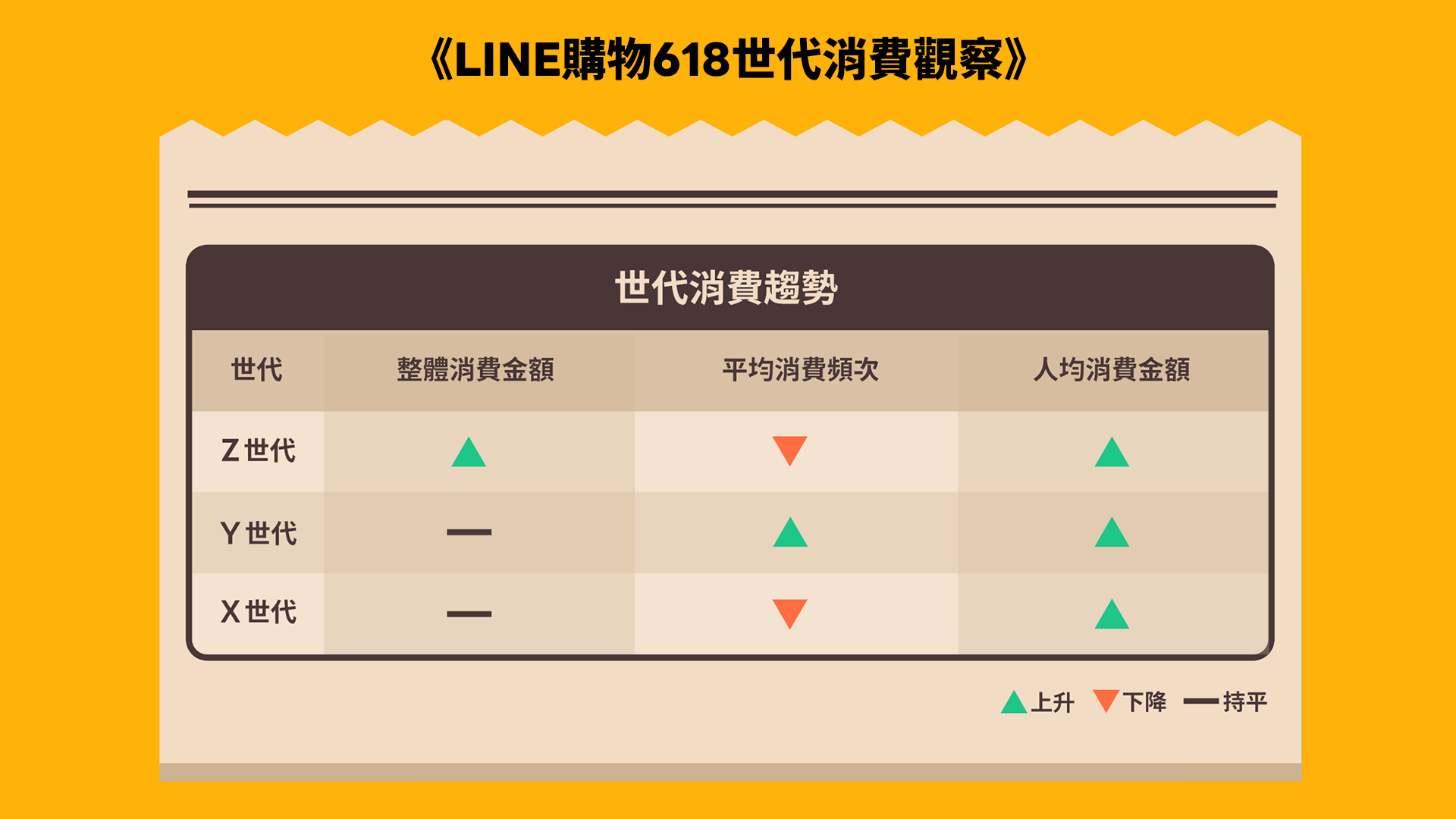 然而,LINE購物發布《618世代消費觀察》,統計去(2024)年及今年1月1日至4月30日期間平台消費數據,針對Z、Y、X三大主流世代進行趨勢剖析。從整體消費金額、消費頻次與人均消費金額三大面向觀察,各世代雖處於不同人生階段,皆展現出重視質感與實用的消費態度,顯示理性與價值導向已成為主流購物趨勢。
