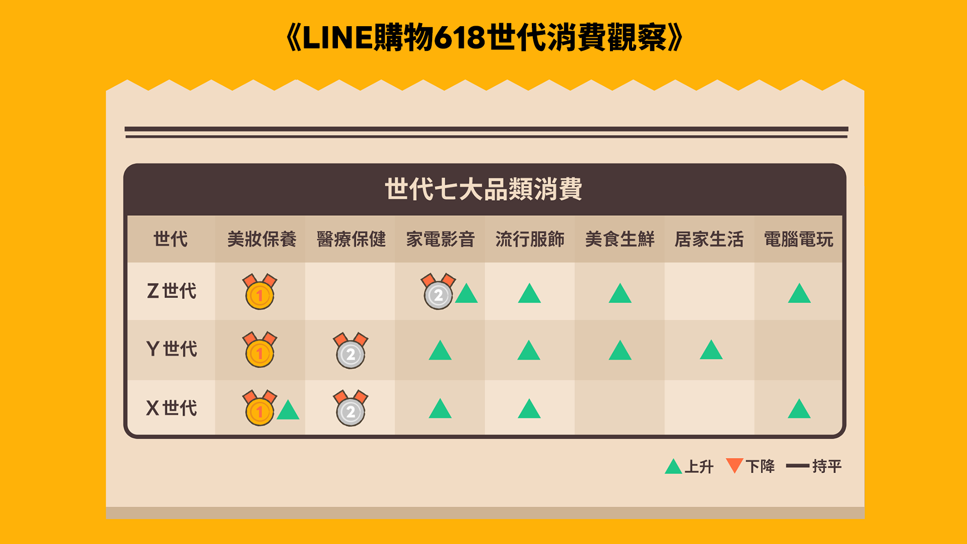 他們偏好兼顧生活效率與自我照護的商品,購買美妝、家電、居家、美食與流行等類別皆呈現增長,反映出其對全方位生活需求的關注與投入。美妝選品重視功效、安全與口碑,愛用品牌如Kiehl’s、La Mer等。在保健品上選擇機能型與養生取向產品。家電需求則聚焦高效能家電如掃地機、除濕機、空氣清淨機,以LG為首選品牌,反映其兼顧功能與品牌信任的決策邏輯。整體而言,Y世代展現了「為家選對實用商品、為自己提升生活品質」的雙軌消費邏輯。