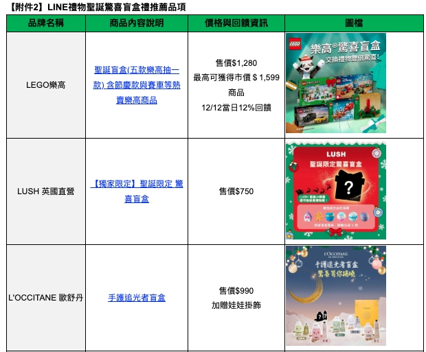 今年主題「我LINE給你」象徵「送出心意,猶如傳出一則 LINE 訊息般輕鬆直接」,鼓勵用戶大方送禮表心意,本次更首度與Jo Malone London攜手推出線下快閃店獨家體驗活動;購買聖誕驚喜盲盒還有機會獲得LINE POINTS 999點。(活動連結)