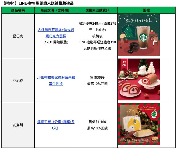 為延續用戶多元的歲末選禮需求,LINE禮物同步公布2024年聖誕檔期的熱門品項供選禮參考。去年,高價禮物以國際美妝品牌倒數月曆最受矚目;票券類則是星巴克 165 元星享飲料券最受歡迎(商品連結);甜點類則以法蕾・熊天使之鈴可麗露(商品連結)最獲青睞。這些熱門品類涵蓋高單價保養品、甜點禮盒與日常飲品券,亮眼業績反映出用戶在歲末送禮時,同時考量實用性與儀式感的並存趨勢。