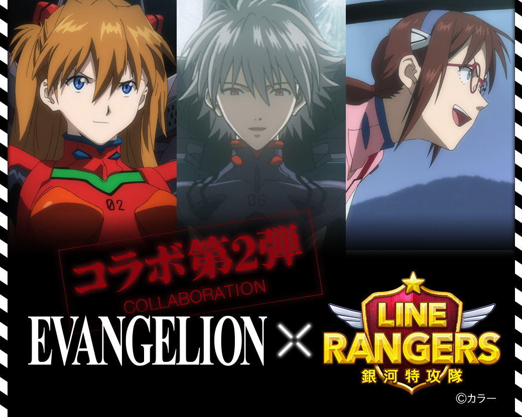 《LINE Rangers 銀河特攻隊》曾在2015年12月與人氣動畫EVANGELION,進行合作特別活動,將自今天起展開第二彈的特別合作。在本次的合作活動中,「式波明日香」、「渚薰」與「真希波真理」將會在傳奇扭蛋中登場,也可獲得「六星 真希波真理」、「四星 美里的項鍊」等限定的Rangers與裝備,另有「第四使徒」襲來的特殊關卡等各式活動。此外,為了紀念本次的特別合作活動,也將於3/8發行LINE Rangers x EVANGELION的紀念貼圖。屆時Android手機的用戶只要完成遊戲下載,iOS的手機用戶加入LINE Rangers銀河特攻隊的LINE官方帳號(@linerangerstw),即可免費獲得此款貼圖。