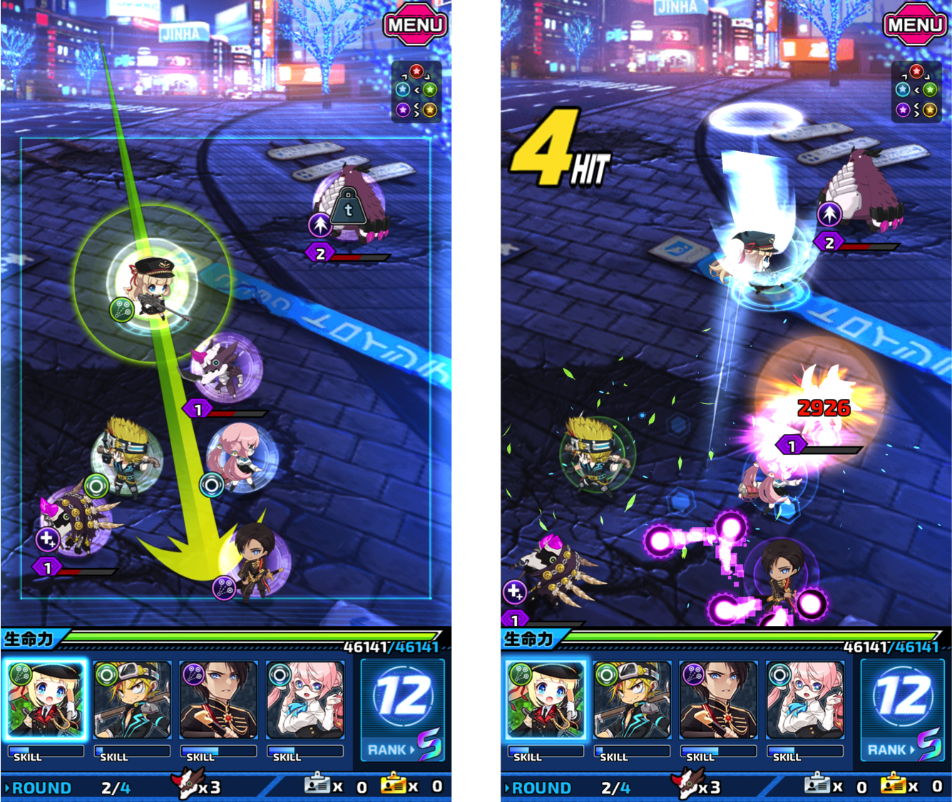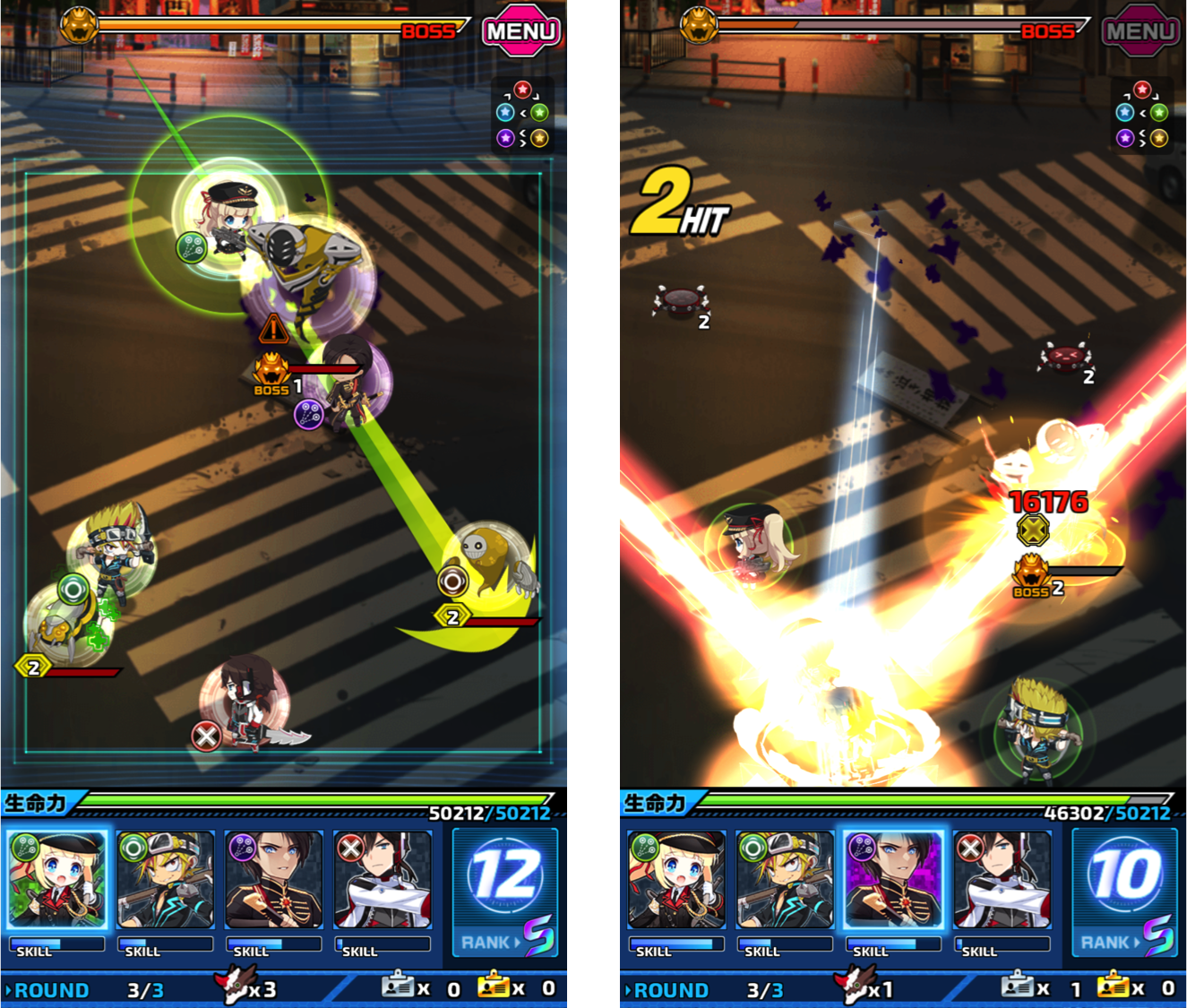 【圖四】突破型隊員攻擊!掌握其「推擠」的攻擊特性,不直接瞄準BOSS,善用隊友目前的排列一口氣全體噴發友情技。
