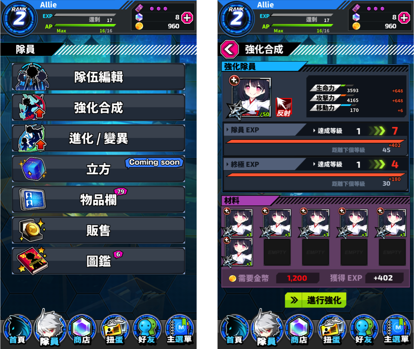 【圖六】如使用「隊員」為強化材料,可提升被強化隊員的能力。