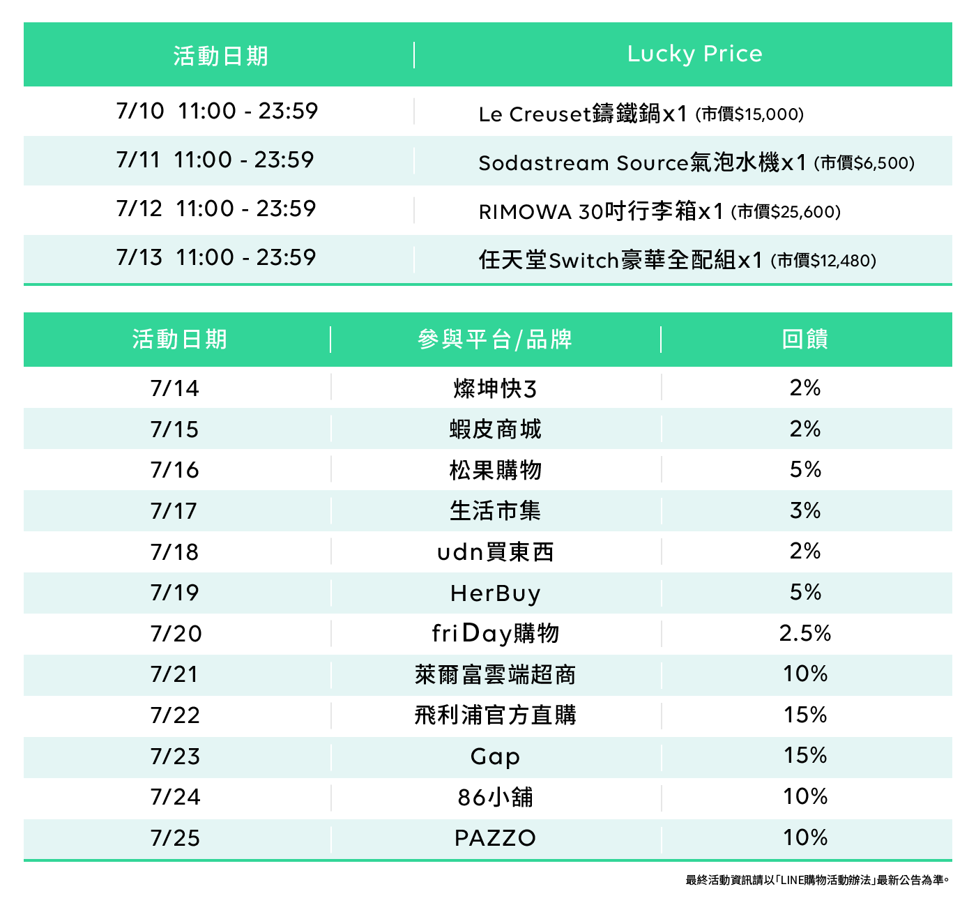最終活動資訊請以「LINE購物」最新活動公告為準。