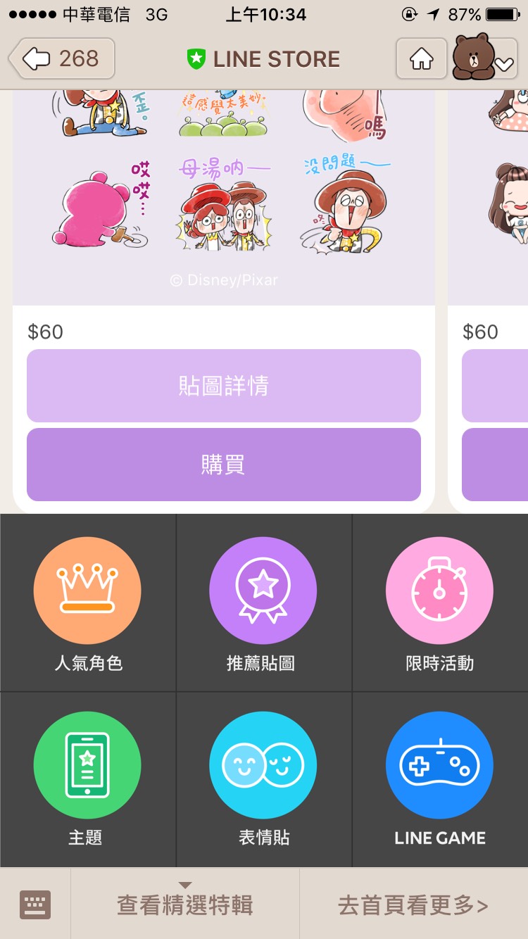 【圖3】步驟一:點擊下方各種彩色按鈕,左右滑動列表即可預覽選購貼圖
