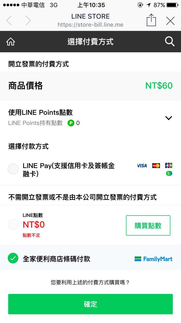 【圖4】步驟二:點擊購買後選擇「全家便利商店條碼付款」即會出現條碼
