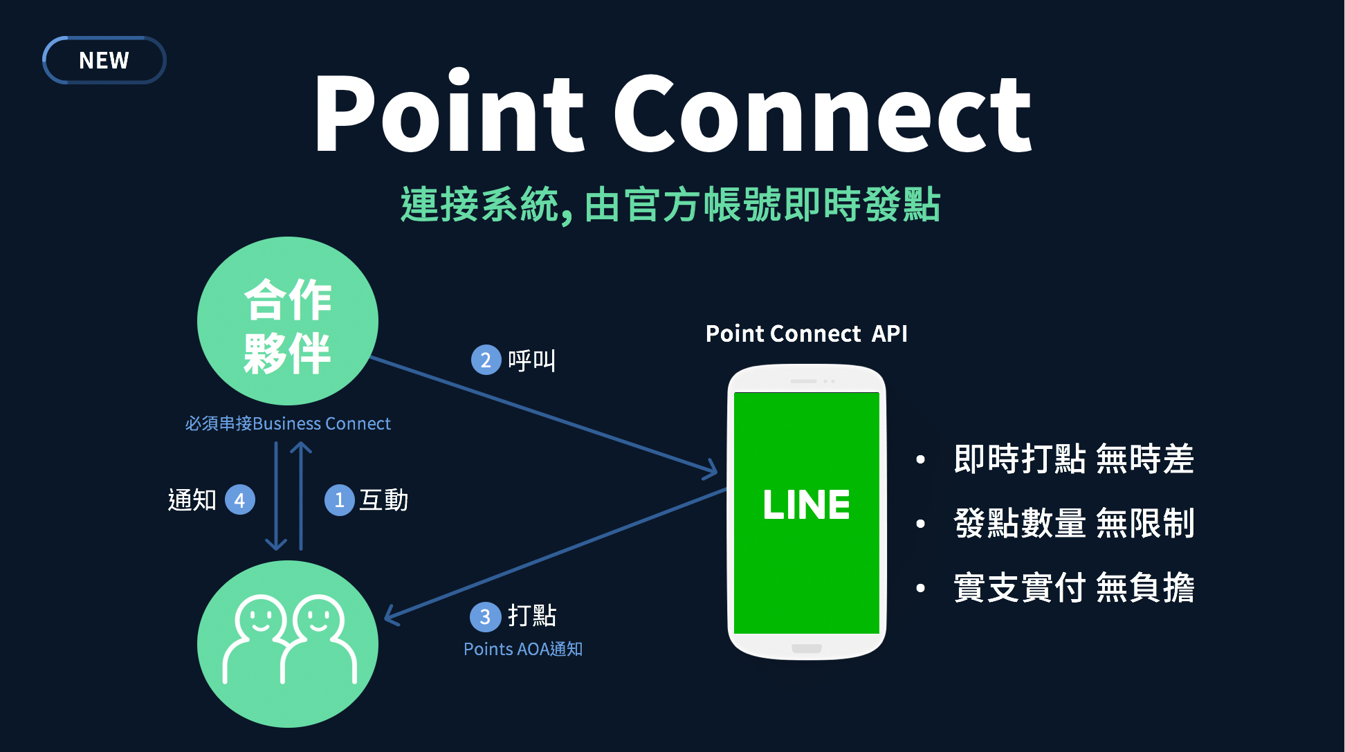 • 新服務!Points Connect:在今(2018)年6月於東京年前中發表的Points Connect,現也剛正式開放台灣企業主使用。Point Connect可以讓企業主的官方帳號,串連發送LINE Points的系統,讓企業主可直接透過自己的官方帳號發送給用戶獲得的LINE Points,使點數發送將更即時,用戶體驗更好,加拉近與用戶之間的距離。