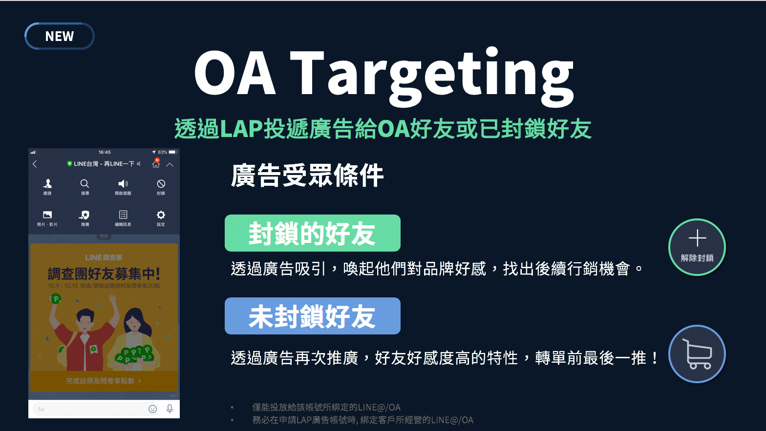 • LAP(LINE Ads Platform):即RTB即時競價,可以精準控制預算、走期。