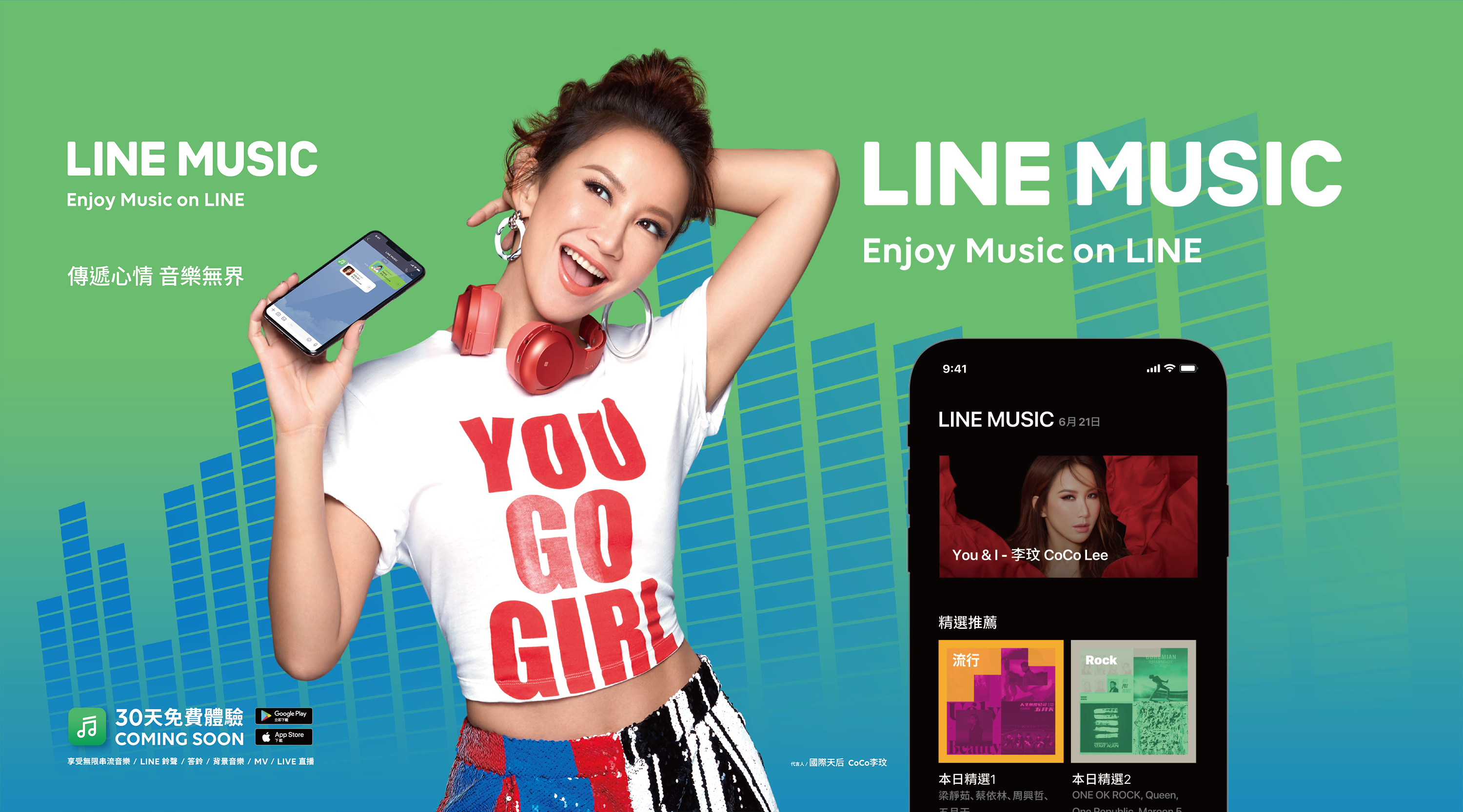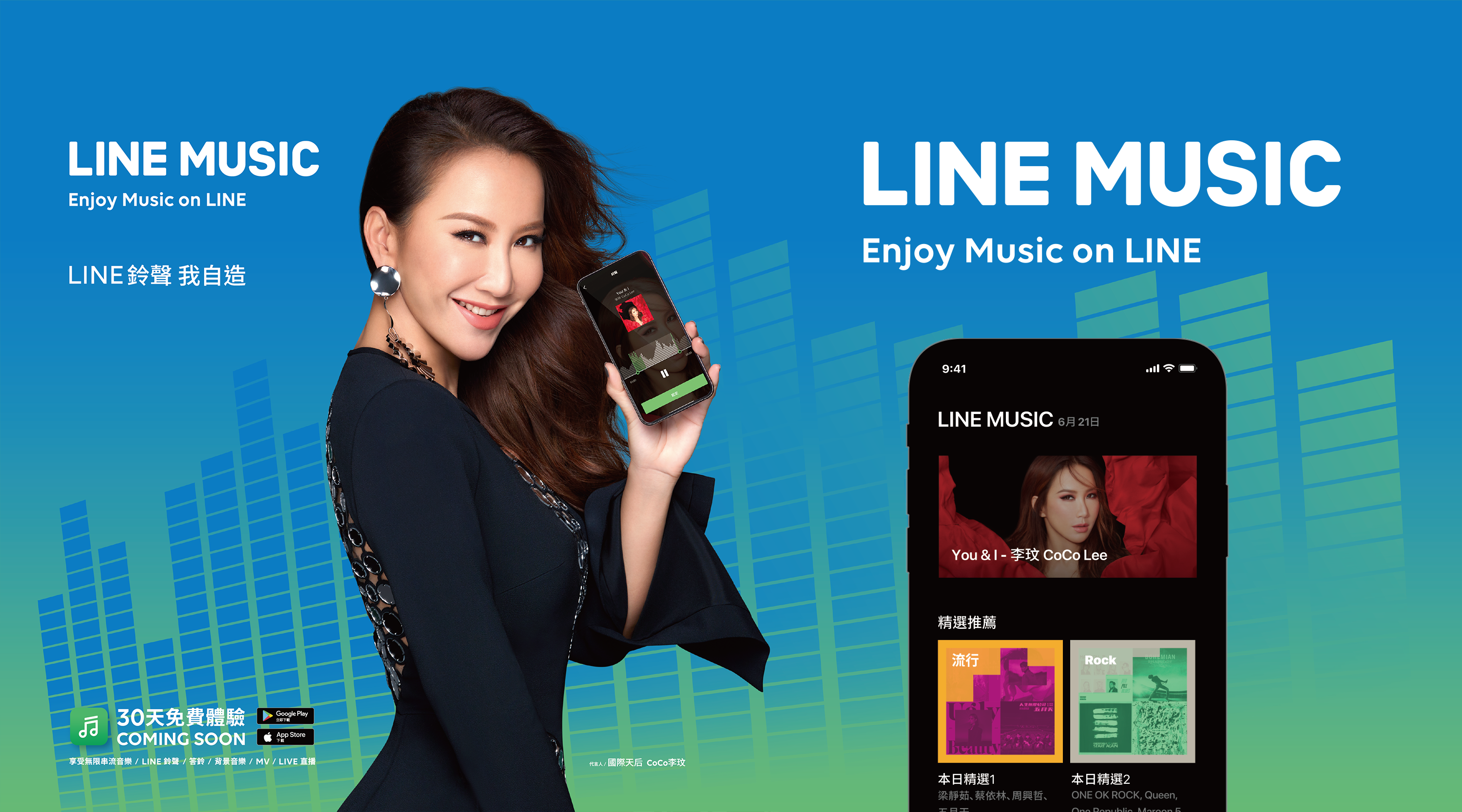 LINE台灣內容事業副總經理張景雯表示:「這次,我們非常榮幸能邀請到李玟CoCo擔任LINE MUSIC的年度代言人,希望能透過她的超高人氣,為LINE MUSIC打響知名度,也藉由CoCo在華人音樂世界不可取代的天后地位,彰顯LINE MUSIC在台灣擴大發展的決心。」