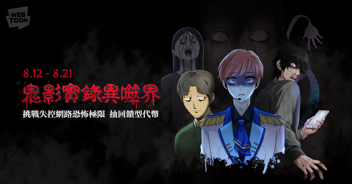 台灣最大行動漫畫平台 LINE WEBTOON 今(12)日宣佈推出年度消暑良方、鬼月驚嚇系列《鬼影實錄異噬界》,今(2019)年首度台、港、韓聯手挑戰你的恐懼極限!除了邀請8位台、港超人氣創作者,更有20位韓國創作者加入驚嚇行列,即日起至今年9月8日止,一連28天每日放送人和鬼之間所發生的各種詭異故事。此外,備受矚目的超人氣作品《鬼傳口談》第二季亦於今日開始連載!將使恐怖氣氛加倍!《鬼影實錄異噬界》連載期間推出限定好康活動,讀者完成指定任務就有機會獲得 LINE WEBTOON 回饋型代幣10枚以及 MyCard LINE 指定卡等好禮!