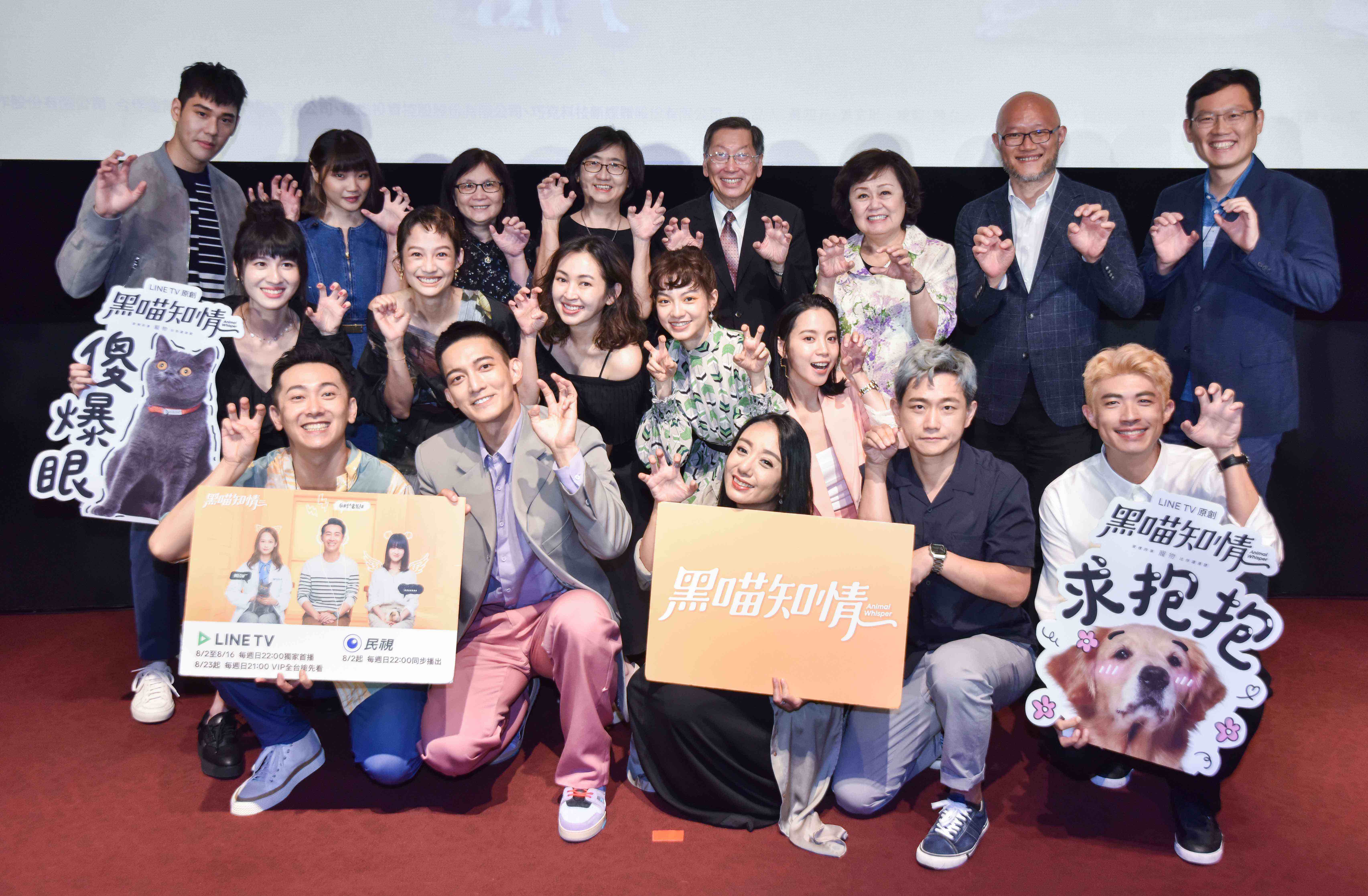 LINE全球事業拓展部資深副總裁、巧克科技新媒體董事長姜玄玭,巧克科技新媒體暨LINE TV執行長陳立人、民視電視公司董事長王明玉與民視電視公司總經理廖季方,以及眾多長官貴賓也前來參與首映,帶來祝福。陳立人說:「今年疫情過後,我們發現市場上更需要多一些療癒系的暖心題材,才能舒緩現今緊繃的社會氣氛,《黑喵知情》是一個在述說寵物與家人之間關係的故事,如劇中想溝通的核心概念:『家裡的事,寵物比你還清楚。』很多人因為上半年被迫關在家中Work from Home,也更能體會到毛孩就是你的家人,而了有牠的陪伴,生活變得更加美好!」民視總經理廖季方很高興有這麼接地氣優質的戲劇,相信在民視週日10點檔會創下好成績。