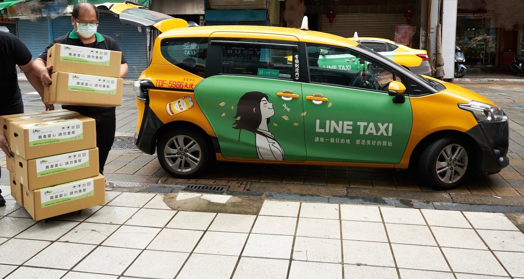 【圖2】LINE購物協助夥伴串連 LINE TAXI 運送,雙北用戶下單成功後、隔日便能收到「農產百寶箱」!