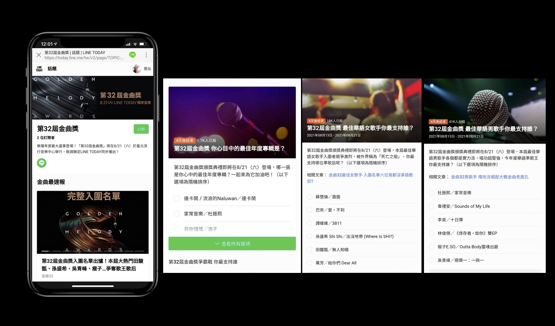 - 最佳華語女歌手:https://today.line.me/tw/v2/poll/x0O9WG