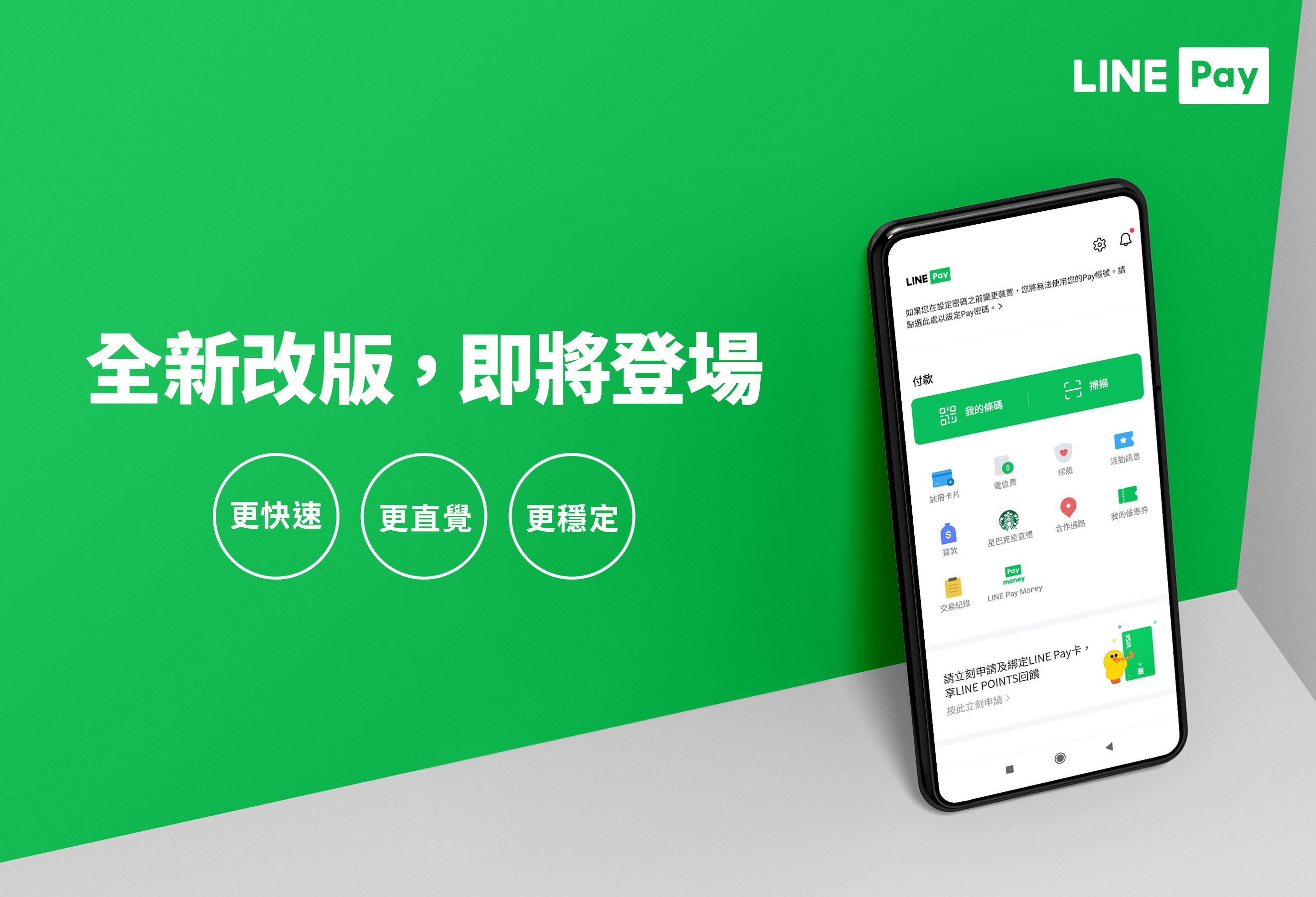 為提供廣大用戶更完善穩定的支付服務,並改善今年以來發生因一卡通公司系統異常導致用戶無法登入使用LINE Pay的情形,LINE Pay於今年6月宣布「LINE Pay提供的綁定卡片支付服務」(以下稱LINE Pay綁卡付款),與「ㄧ卡通公司提供的LINE Pay Money服務」(以下稱一卡通電子支付)將採分別驗證登入,此項「分別驗證」功能將在11月2日正式上線,用戶將可於LINE 11.19版本中體驗LINE Pay新功能。本次LINE Pay兩大改版重點包括: