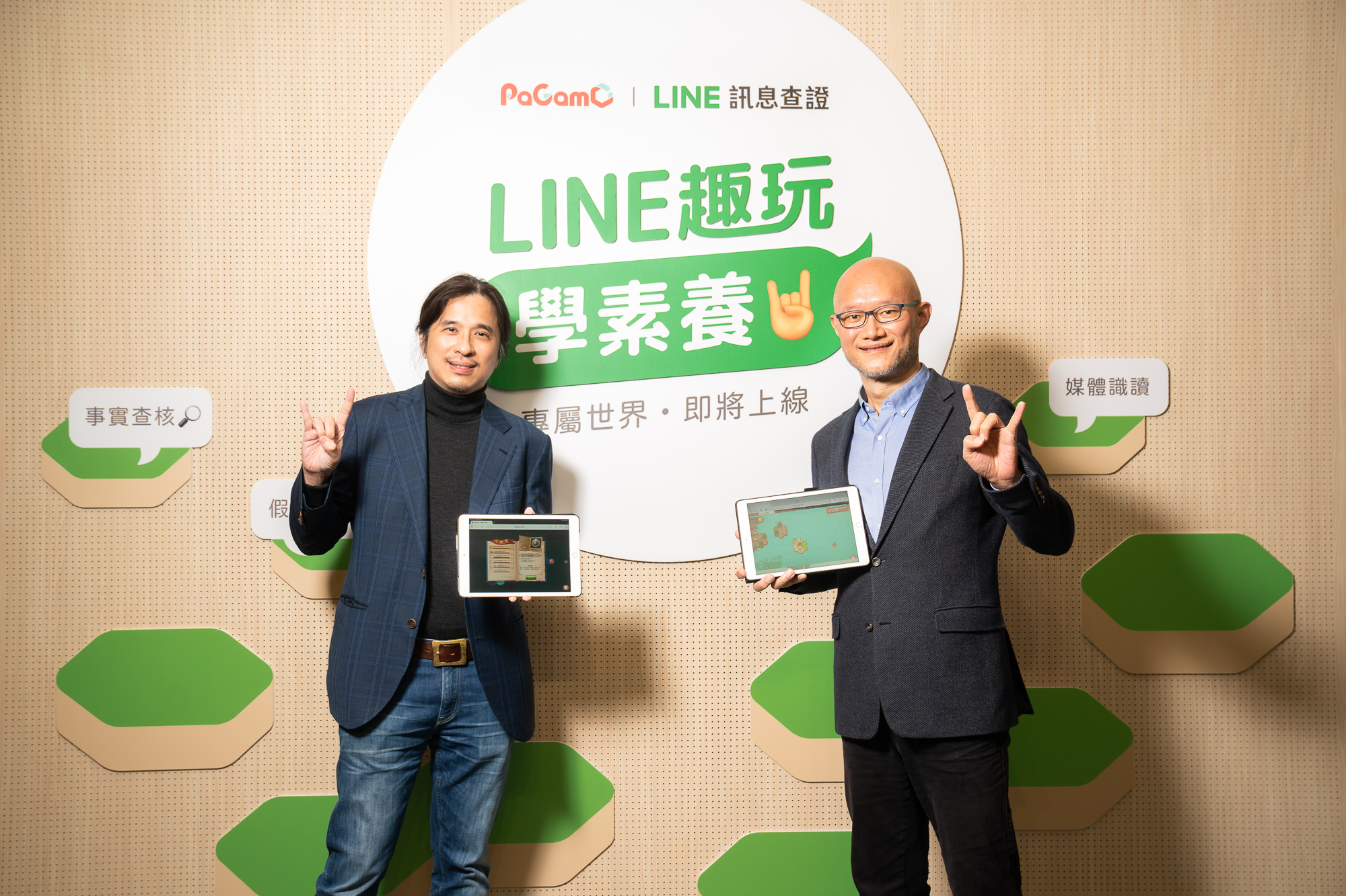 圖說:LINE台灣董事總經理陳立人(又)和PaGamO創辦人葉丙成攜手推出專屬世界『LINE趣玩學素養』