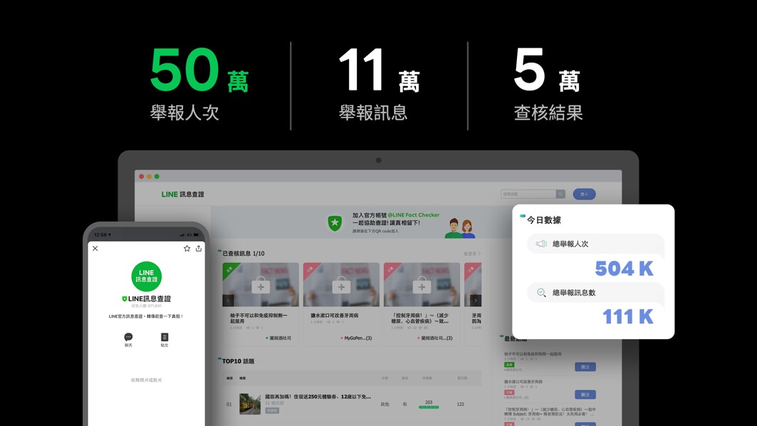 現今科技發展、網路發達,大量的訊息透過通訊軟體、社群媒體、或者影音平台填滿著人們的生活,佔據大眾所有的注意力。LINE自2019年正式啟動「LINE數位當責計畫」,由台灣開發團隊開創的「LINE訊息查證」官方網站與官方帳號,與四大民間事實查核組織和行政院長期合作,經努力不懈持續優化服務,近三年來於累計超過50萬人次透過訊息查證平台進行舉報,總舉報訊息數更超過11萬筆,查核資料庫匯聚超過5萬筆以上查核文,成為目前全台最大查核平台,且官方帳號累積超過77萬好友,證明此公益服務平台的成效顯著。