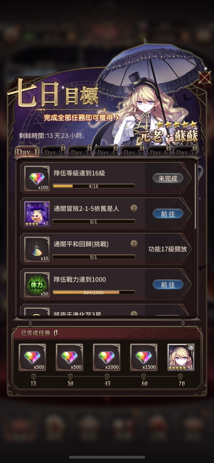 【圖四】完成「七日目標」所有任務,即可獲得5星卡牌角色「元老・蘇蘇」